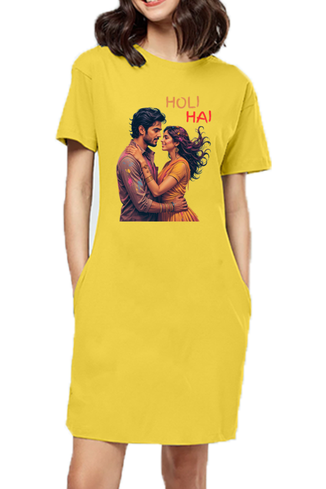 Get ready to celebrate Holi like a true Bollywood diva with our Holi Special T-Shirt Dress! Inspired by the iconic festival looks of your favorite stars, this chic and comfortable dress is perfect for twirling in vibrant colors. Made from soft, breathable fabric, it offers effortless style while keeping you comfortable throughout the celebrations.