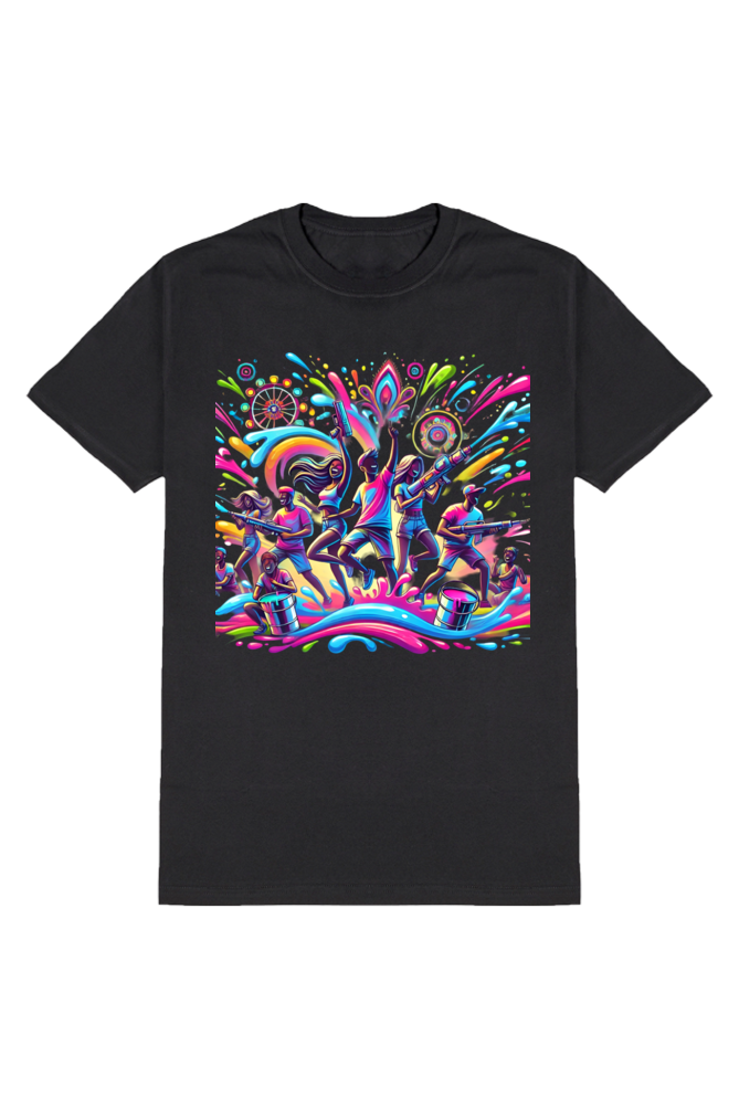 Bold & Bright This Holi! 🖤🎨 Rock the Festive Vibes with Our T-Shirt! 🌈✨